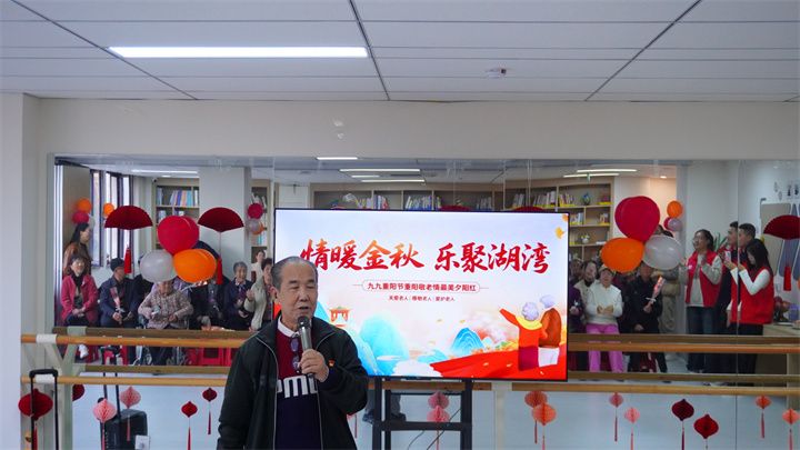 在东湖湾小区湖湾康养中心,师生们为老人献上精彩的文艺演出,用艺术传递温暖,以行动践行敬老爱老的传统美德。