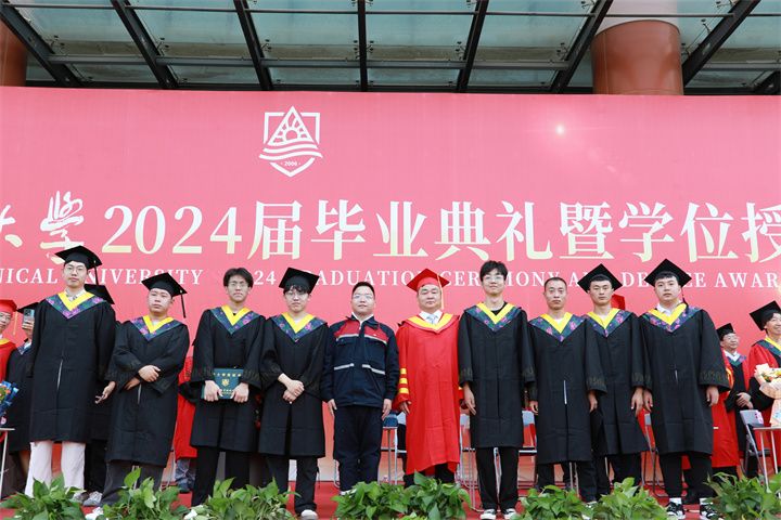 马长江首先回顾了学校“做学合一,厚实融通”的校训和“以学生未来为本,以教育品质为根,以人格素养为重,以技术传创为主”的办学理念,倡导学生树立正确的世界观、价值观和人生观,强调了理论与实践结合的重要性,以及学生在“人品”和“德行”上的厚实厚重,先成人后成才,先学做人后学做事。他指出,校训和办学理念的践行,更加坚定了我校走“产教融合”之路,培养具有“人文素养、职业素养、技能素养”以及工程思维、工匠精神,能够解决企业现场实际问题的高层次高素质人才的决心。它是运大一代代师生传承下去的育人精神,也将是毕业生未来生涯发展中最宝贵的“秘密武器”。