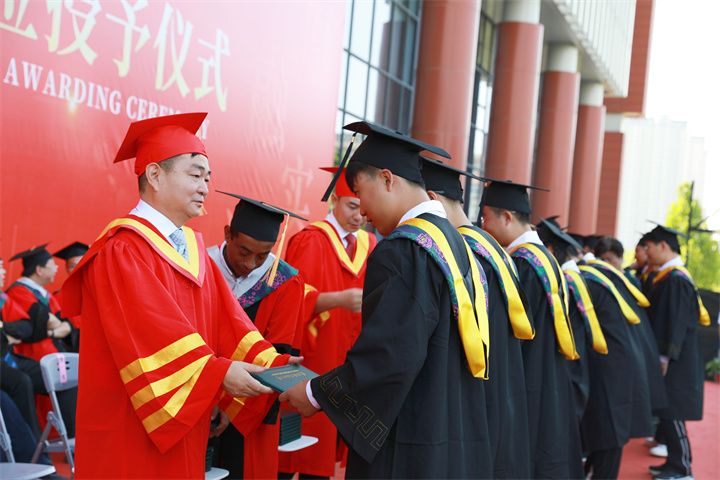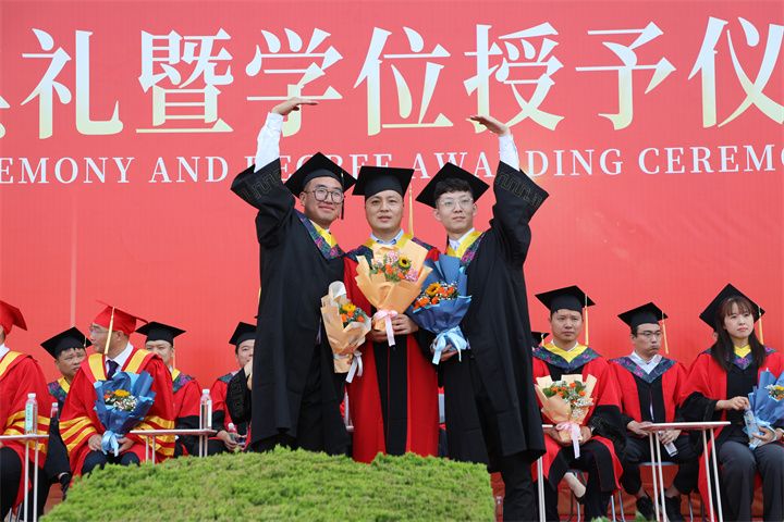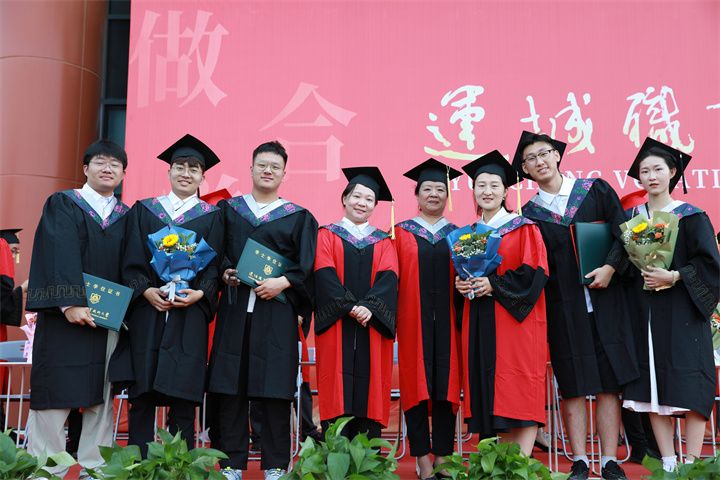 导师团全体成员为毕业生颁发学位证书及拨穗仪式