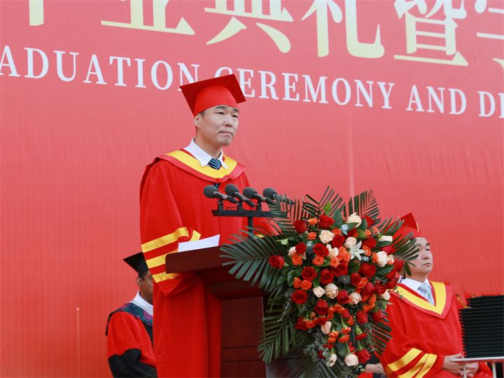 马长江作了题为“弦歌不辍青衿志,薪火相传砥砺行”的致辞,向全体毕业生表达了最诚挚的祝福,并向辛勤耕耘的教职员工致以崇高敬意,同时对长期以来支持学校发展的家长及社会各界朋友表示衷心的感谢。