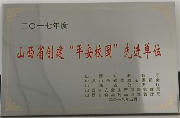 我院荣获2017年度山西省创建“平安校园”先进单位